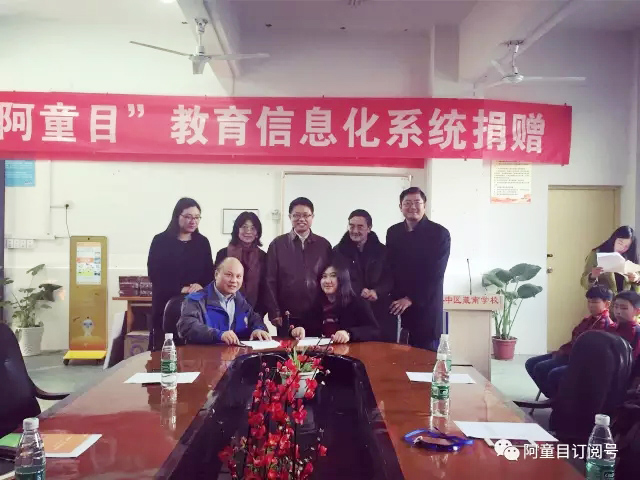 在民辦教育協(xié)會領(lǐng)導(dǎo)和胥口鎮(zhèn)鎮(zhèn)政府領(lǐng)導(dǎo)的見證下,藏南學(xué)校許校長和江蘇童訊科技有限公司的楊總簽訂了捐贈協(xié)議,“阿童目”免費為藏南學(xué)校提供智能教育管理系統(tǒng)和安防系統(tǒng),并且終身免費維護。